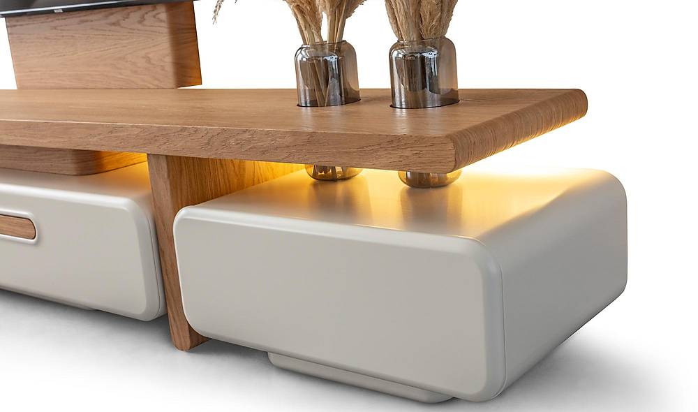 - Indrukwekkende breedte (240 cm): biedt veel plaats voor media, decoratie en opbergruimte — ideaal als tv-dressoir, wandmeubel of stijlvolle blikvanger in een ruime woonkamer.