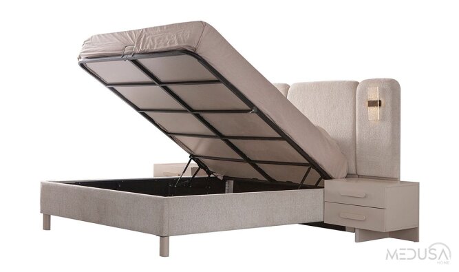 - Flexibele basisoptie: het bed wordt standaard geleverd zonder opbergbasis, maar kan op aanvraag worden uitgevoerd met een baza (opbergfunctie) — perfect als u extra opbergruimte wilt.